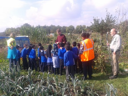 Pupils ask questions at the tomato patch